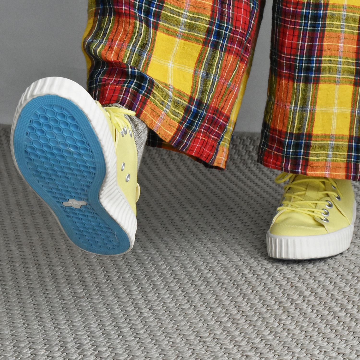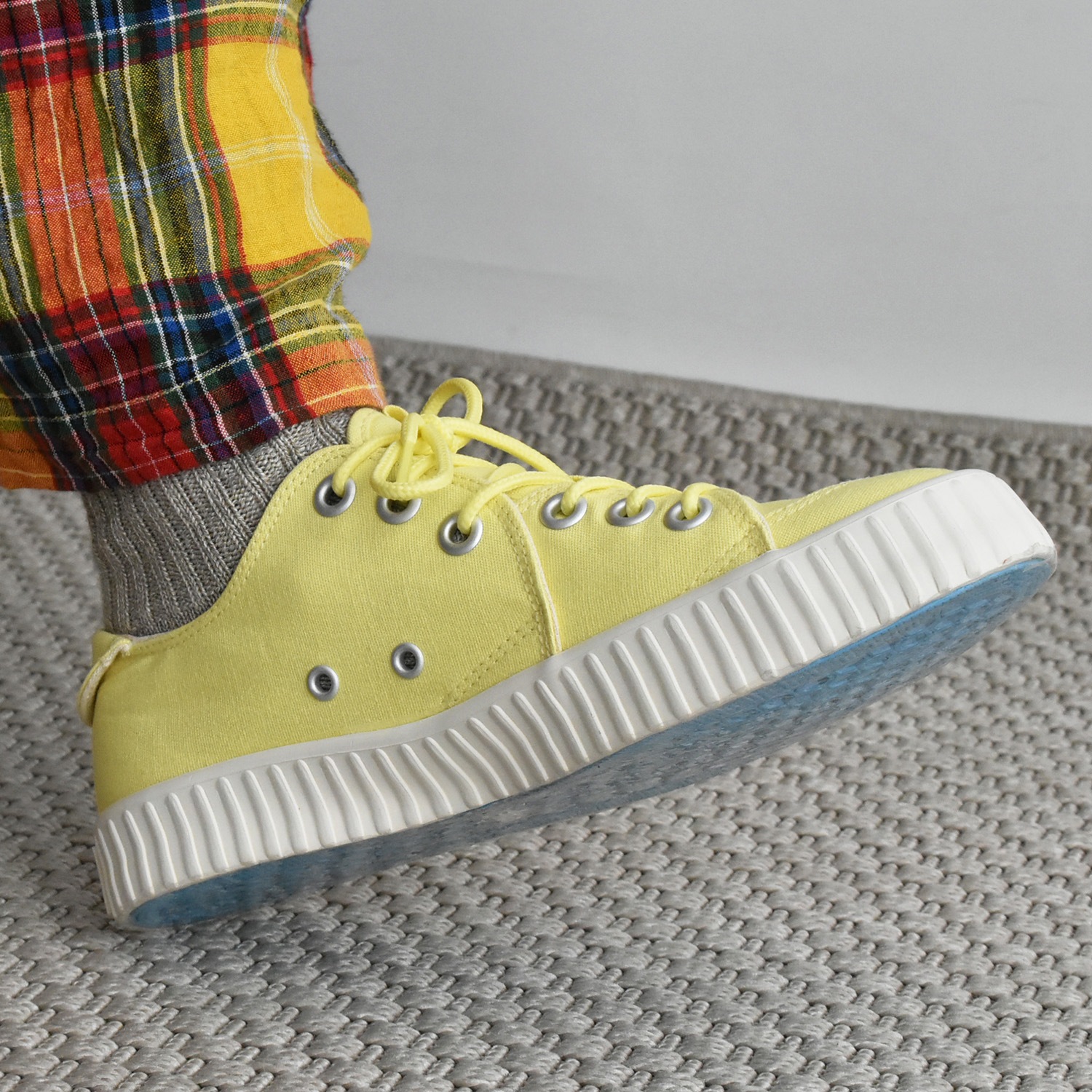 アウトソールはRFWのブランドカラーのシアンブルー(水色)になります。