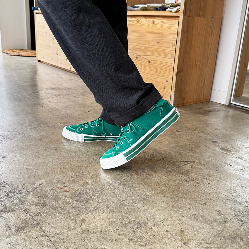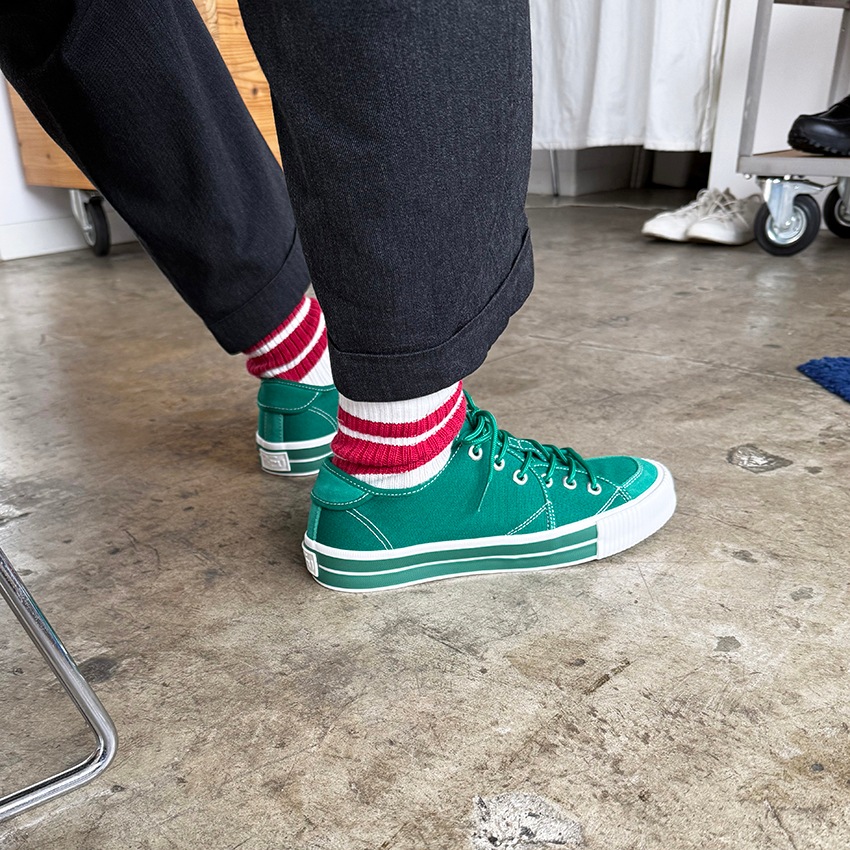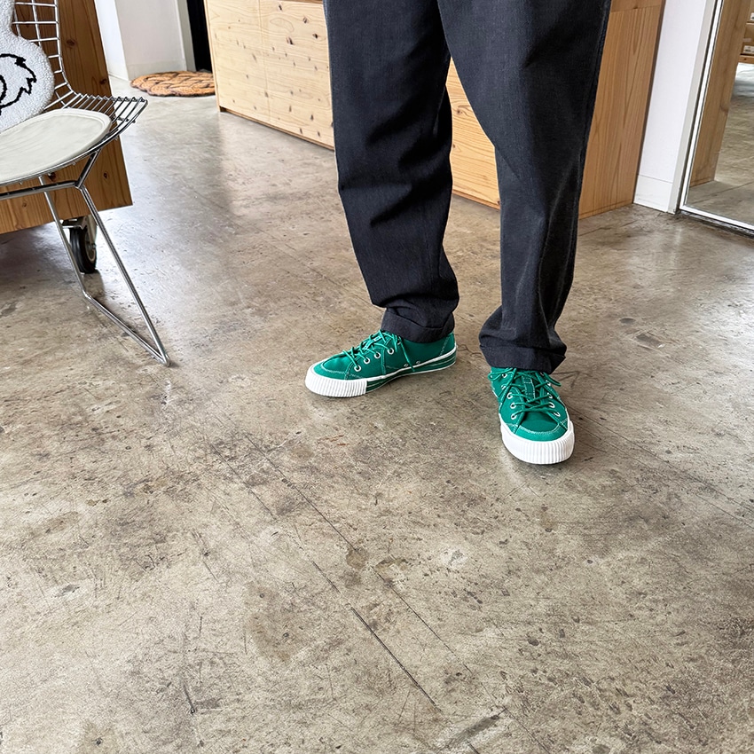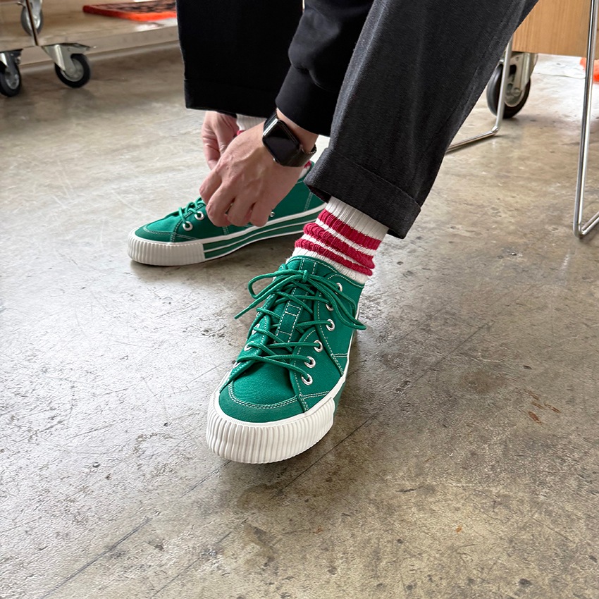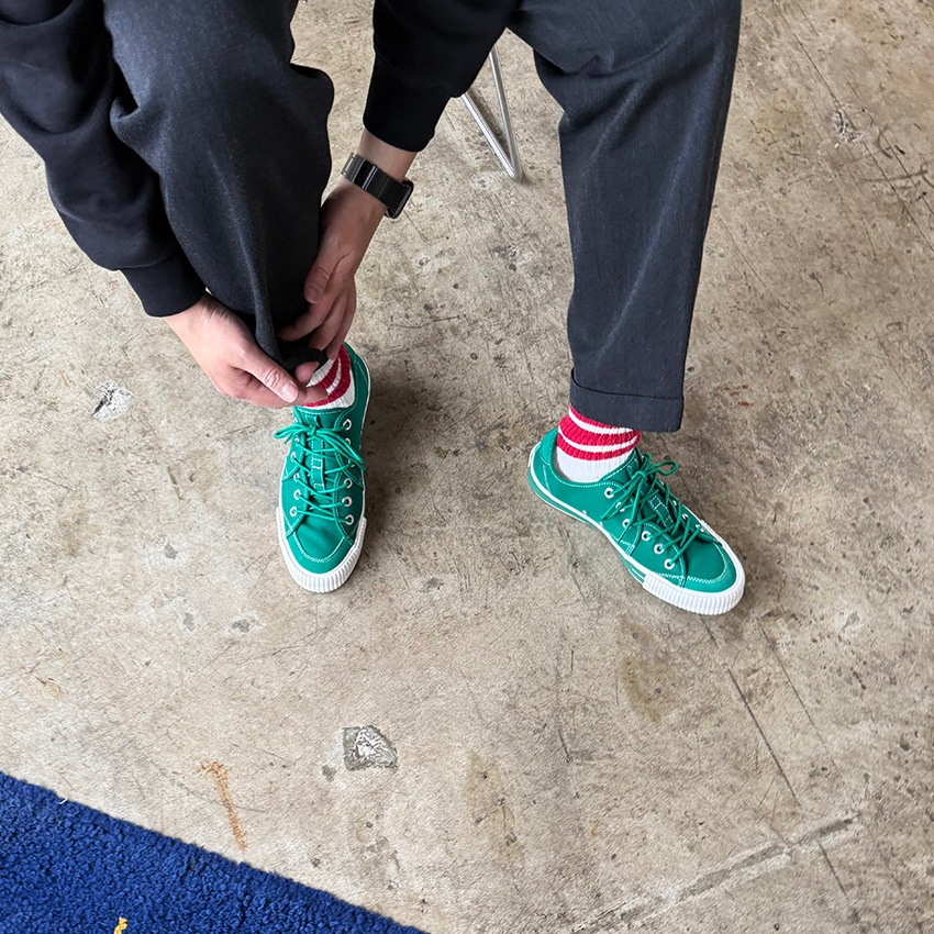 2025秋冬の新作『SANDWICH-LO STD1』は、初期に製作したキャンバス&スエードのモデルをアップデートさせました。インソールを貼り付けのものからPUインジェクションのカップインソールに改良。カップインソールが足全体をサポートし、長時間の歩行でも快適な履き心地を実現しました。