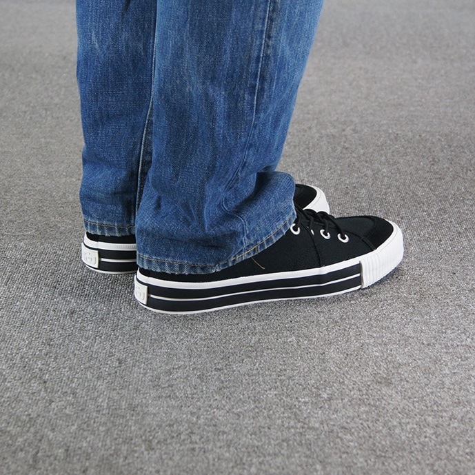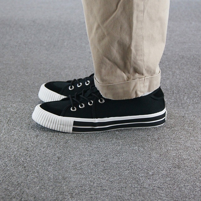 スタイリッシュなブラックキャンバススニーカーは、カジュアルなスタイルからアクティブなシーンまで幅広く対応し、日常使いはもちろん、様々なシーンで活躍してくれます。
