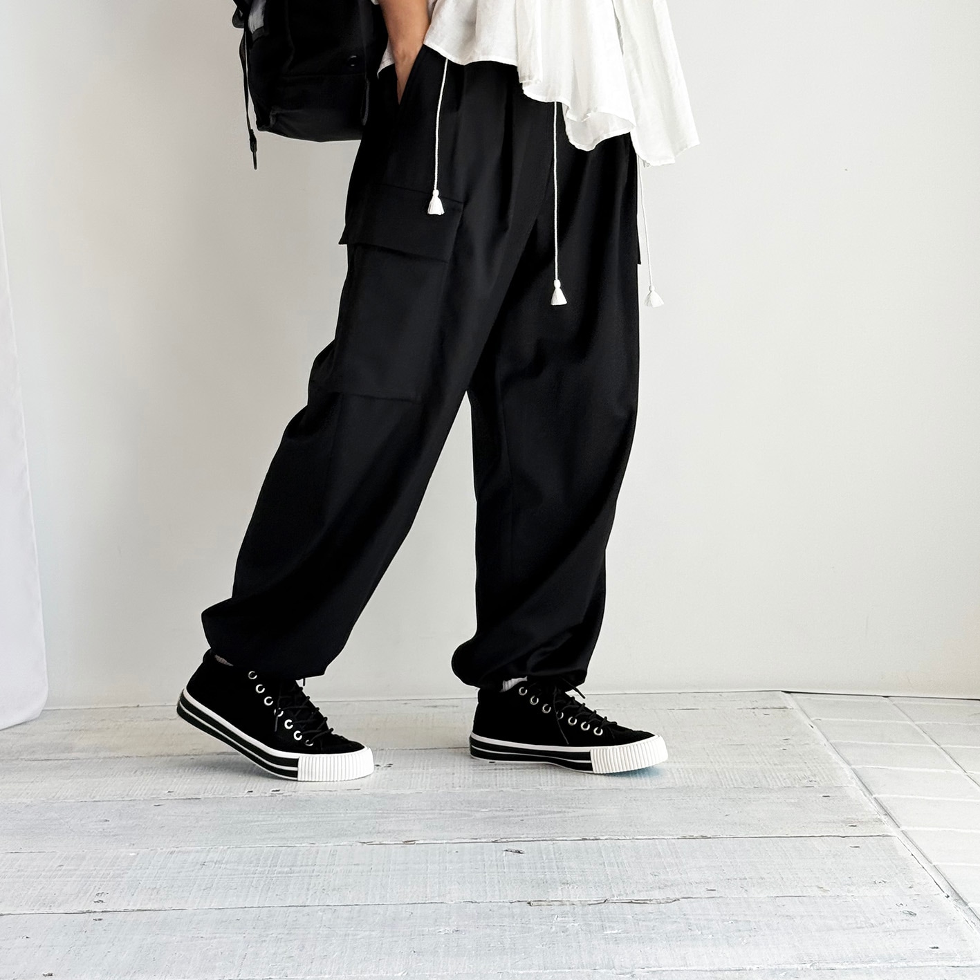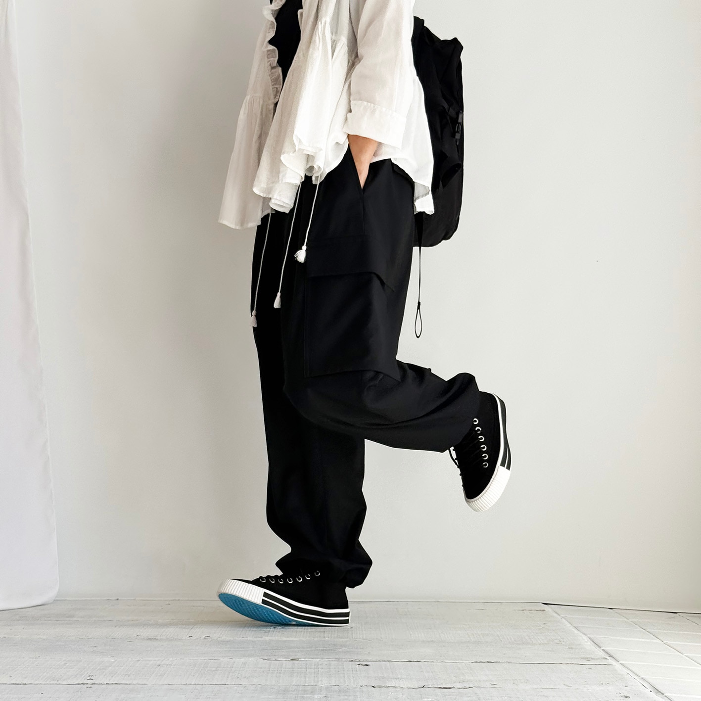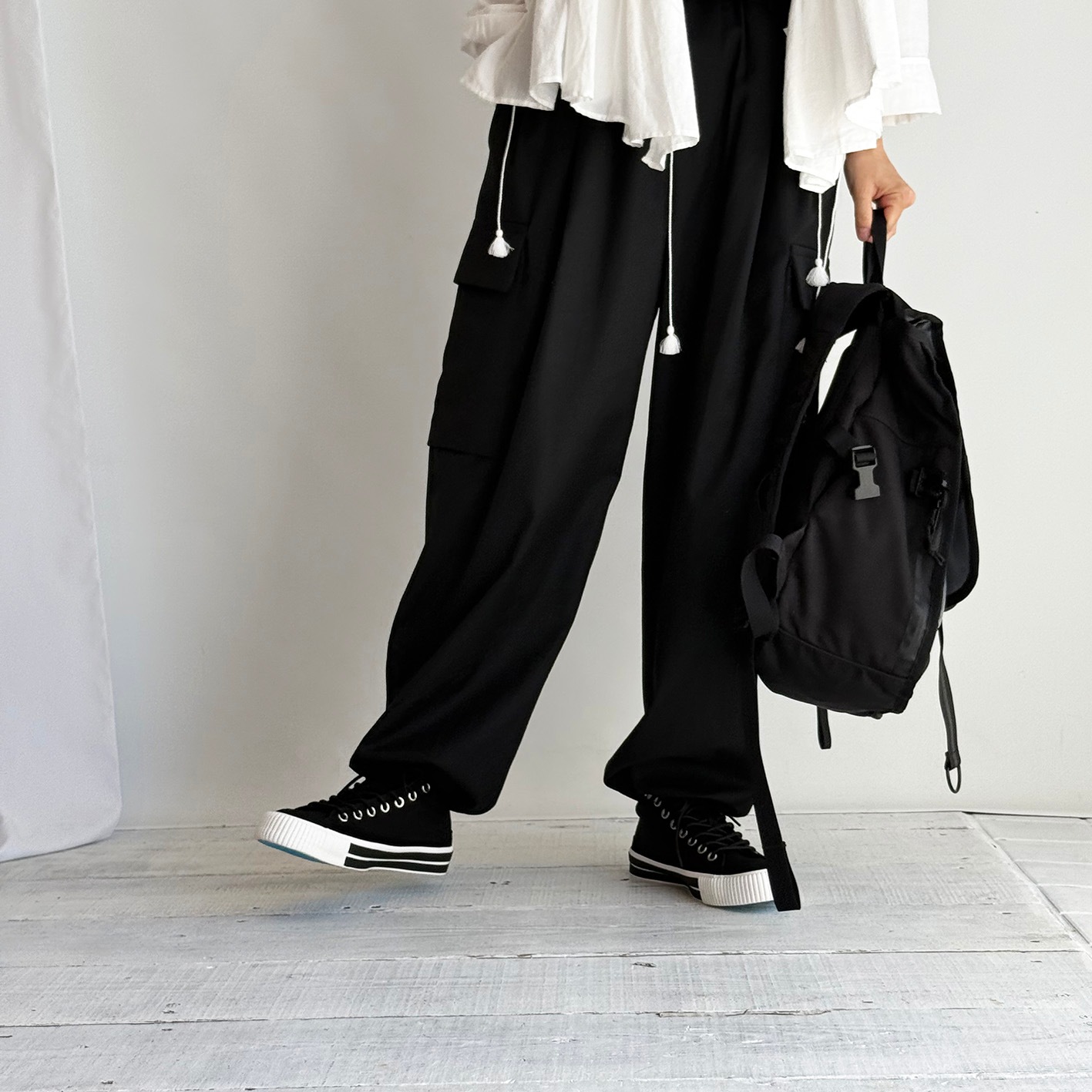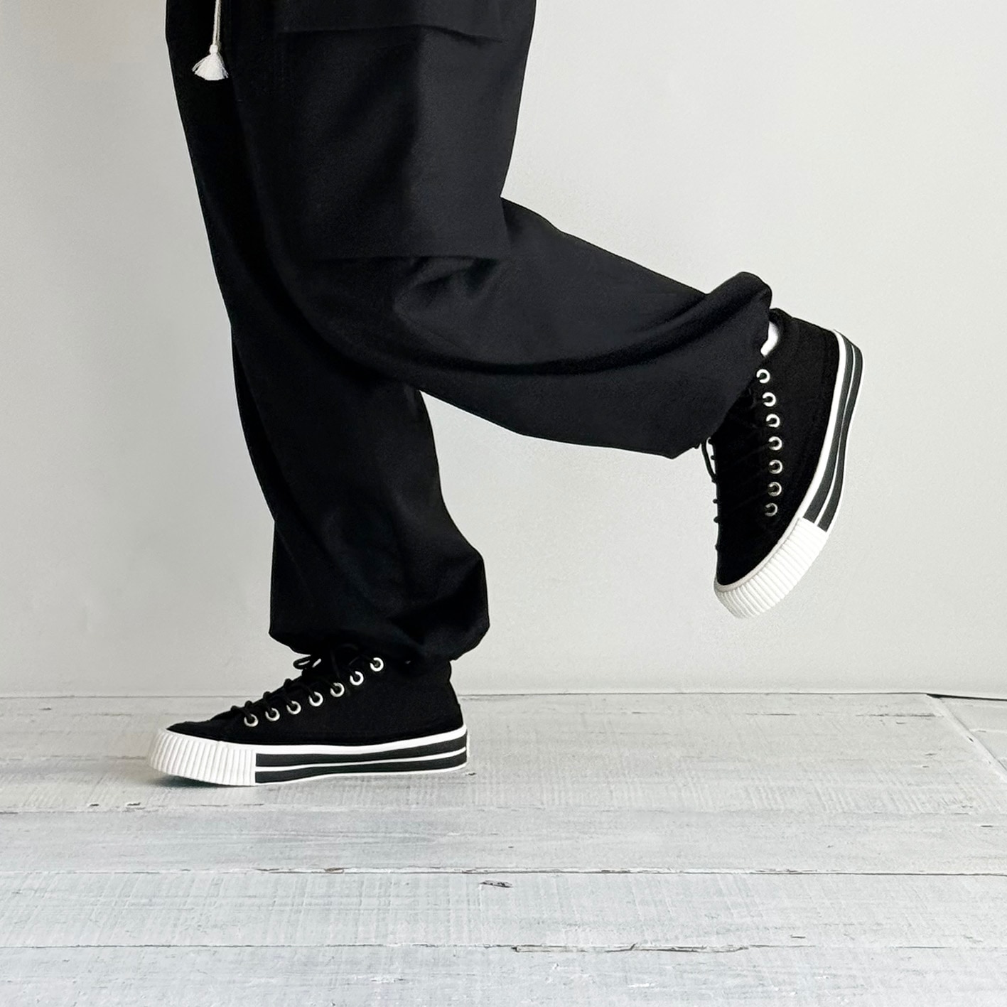 キャンバスのブラックの清潔な色合いは、シーンを問わず幅広くコーディネートできるのが特徴です。